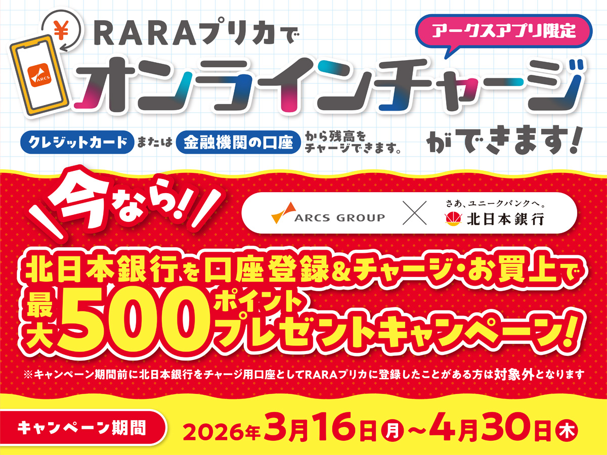 北日本銀行での銀行口座チャージでRARAポイントプレゼントキャンペーン